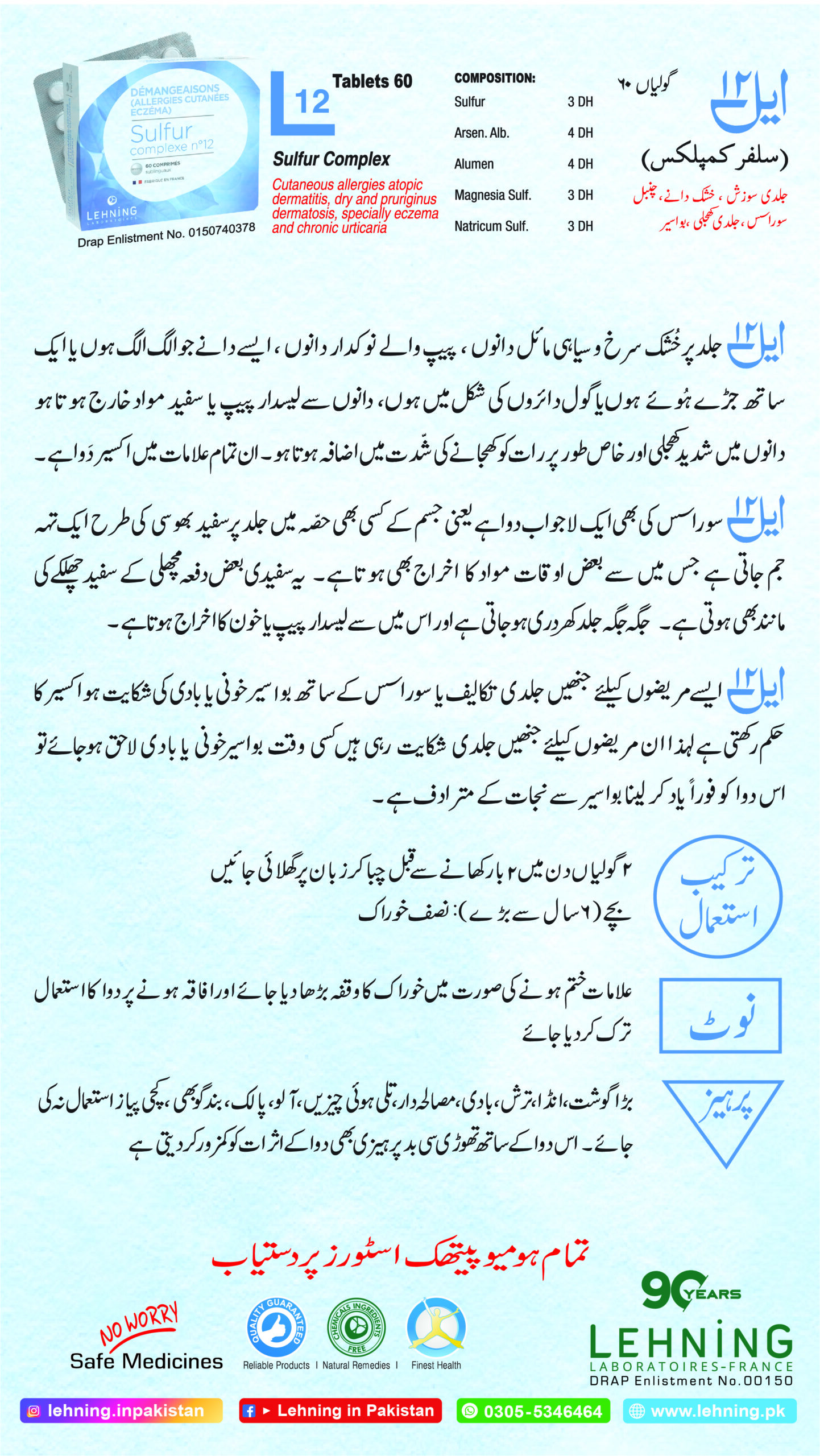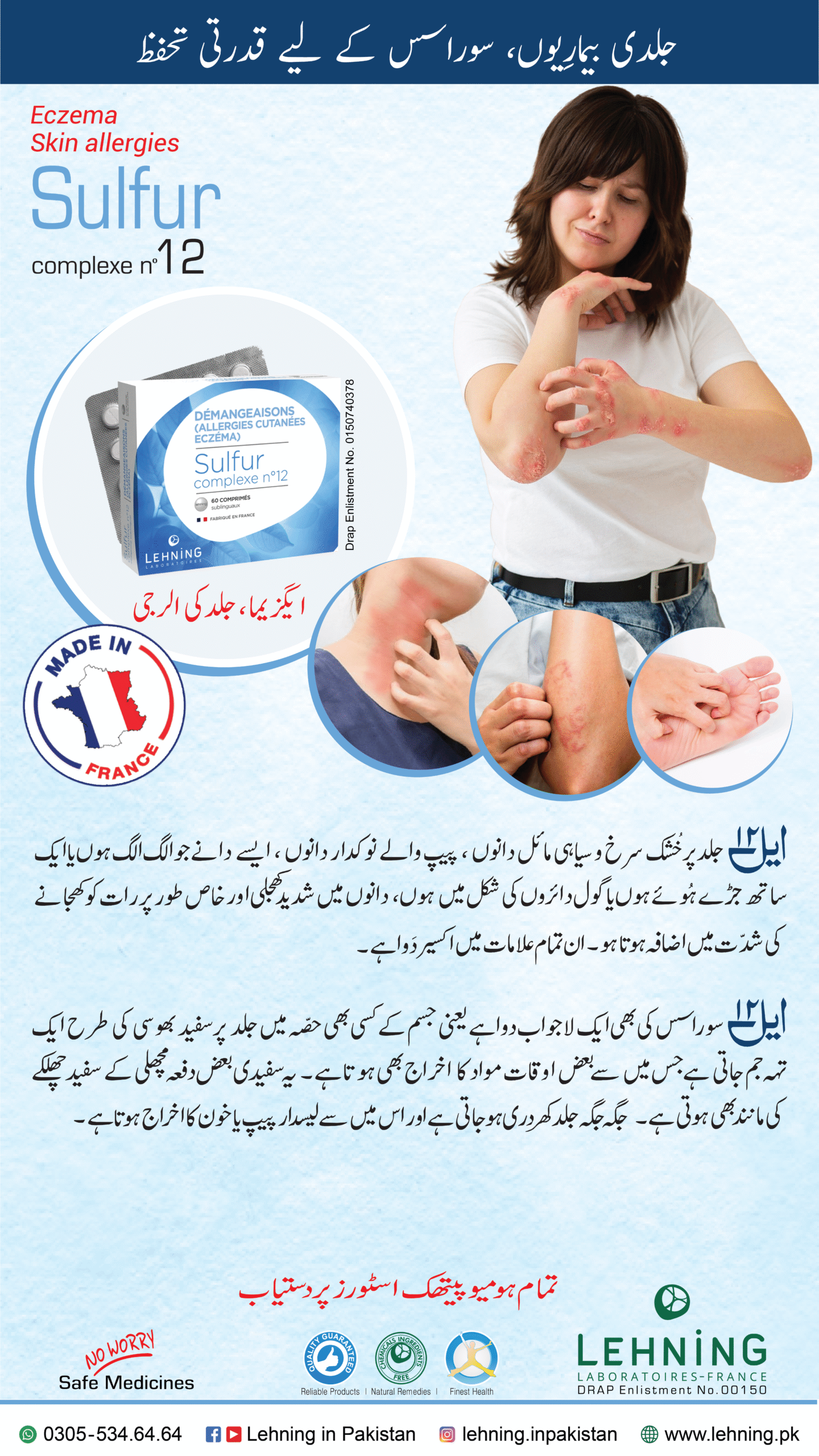 As a Homeopathic Doctor, I would like to share my professional review about L-12 Sulphur Complex by Lehning Laboratories. This medicine is especially formulated for chronic skin conditions such as cutaneous allergies, atopic dermatitis, eczema, and chronic urticaria (hives).