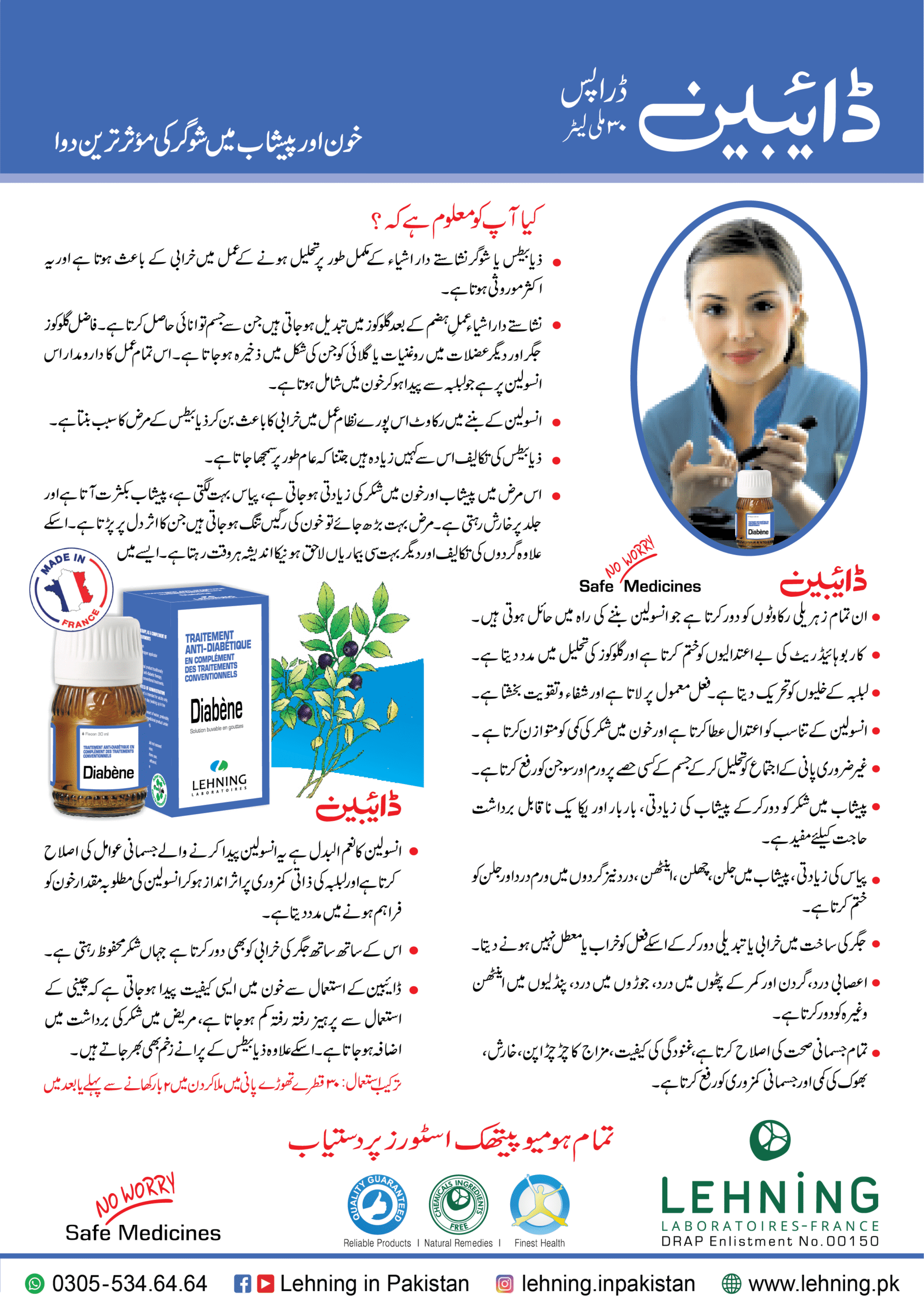 Diaben drops is a homeopathic medicine produced by Lehning Laboratories in France, designed specifically for the management of diabetes. It is composed of several active ingredients that work synergistically to help regulate blood sugar levels and improve overall health in individuals with diabetes.
